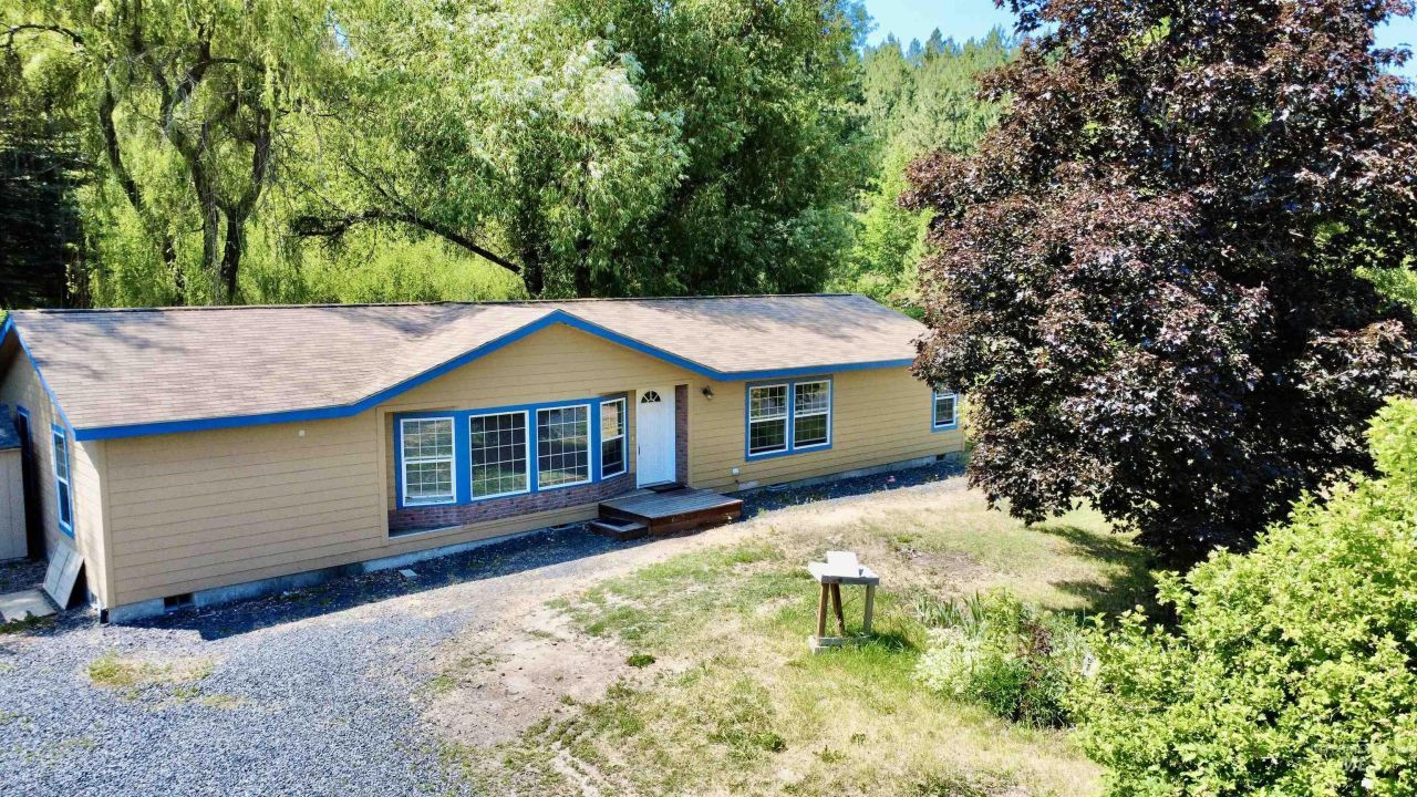 Located at the edge of Moscow Mountain, this 3-bedroom, 2-bath manufactured home sits on just over 1.5 acres of usable land, offering a mix of open, level ground and mature trees. The home features an open floor plan with a large kitchen and dining area, skylights that provide abundant natural light, and an electric fireplace. A separate utility area adds functionality and storage. The property offers ample space for gardening, animals, or future improvements such as a larger garage or shop. Recent updates include a new deck, along with an approximately 20 x 20 shop with a 10 x 30 lean-to for additional covered space. The manufactured home is on a permanent foundation and is classified as real property. Paved road access leads directly to the driveway, providing easy year-round access while remaining just minutes from town. With minimal residential zoning restrictions and strong potential for a variety of uses, this property presents an opportunity to own affordable, usable acreage in a private and scenic setting.