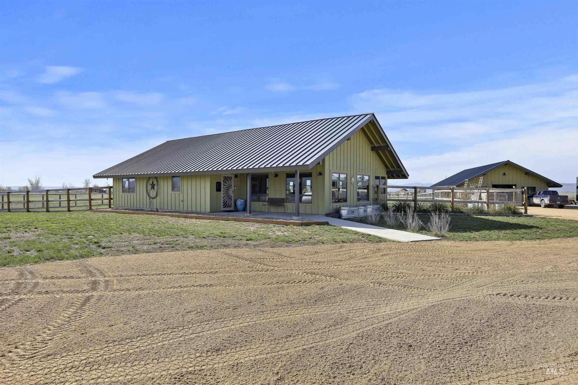 LINKS TO AERIAL VIDEO & INTERACTIVE FLOORPLAN AT DOCS TAB. Escape to the mountains with this newer custom home on 10 acres just outside Fairfield, Idaho, at the base of the Soldier Mountains with sweeping views of the Camas Prairie. Designed for year-round comfort, the home features hydronic floor heating, mini split HVAC, and a Blaze King wood stove. The kitchen offers concrete countertops, a coffee bar with water hookup, and high-end appliances including a 48 LP/electric range and Thor hood. Two master suites each include private baths, with French door access to a hot tub area.Additional highlights include an insulated sunroom with Pella windows, Lifeproof LVT flooring, whole-house filtration, yard irrigation, and WiFi to the shop. The property is partially fenced with multiple gates and a new well pump (2024). Wait til you see the impressive 30 x 58 heated shop with 200-amp service, drive-through insulated doors, car lift, separate septic, RV hookups and more. Just 15 minutes to Soldier Mountain and endless public lands recreation opportunities. Dont miss the interactive floor plan and drone video at the available links. All photos taken in Camas County.