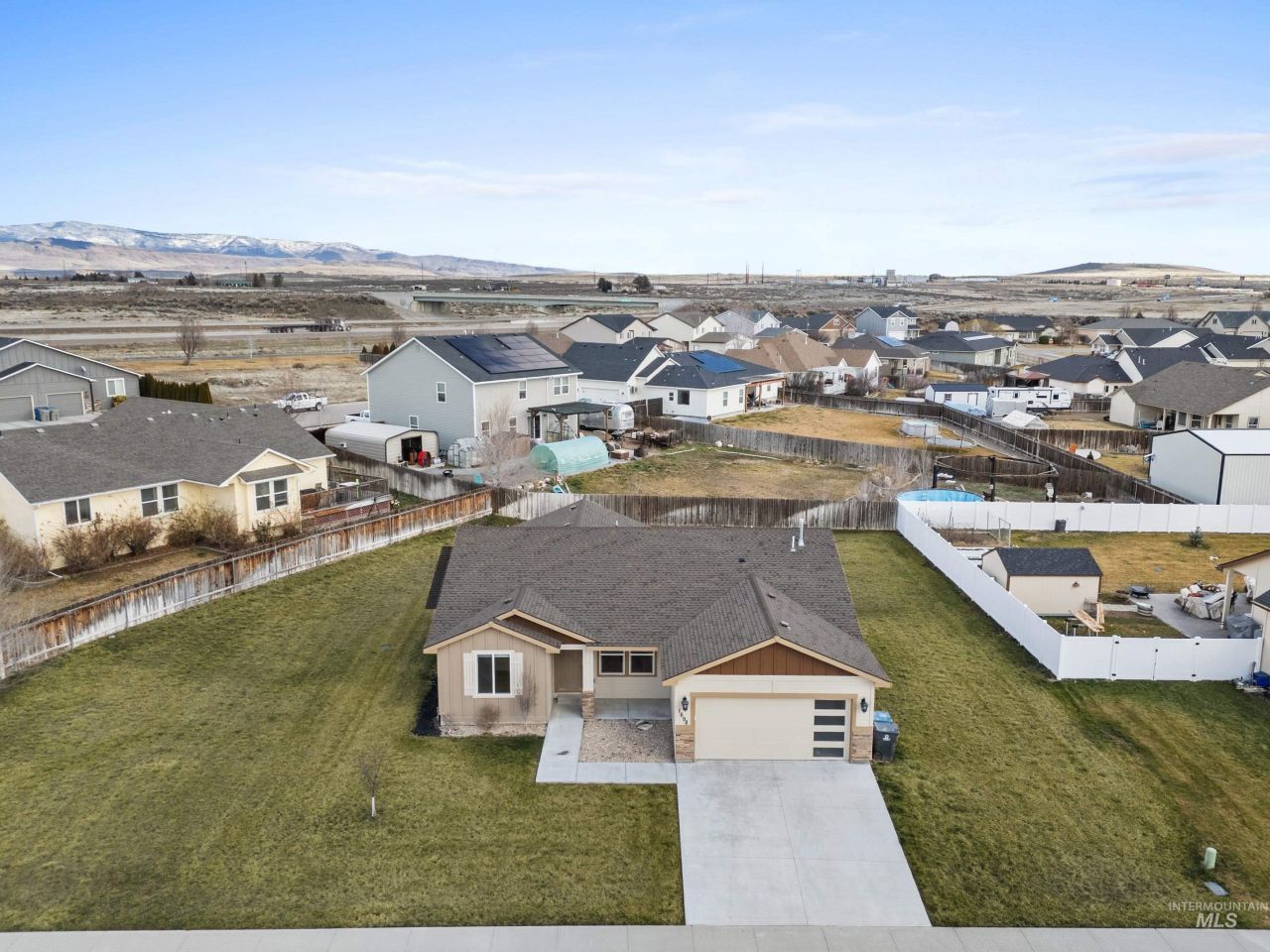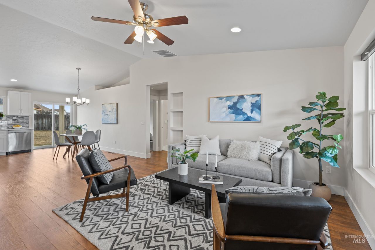Welcome to this inviting custom home! Set on a spacious .303-acre lot with NO HOA and plenty of room to grow. Theres ample parking for your RV and toys, plus space to add an outbuilding or garden. Inside, the open-concept living area is bright and comfortable, featuring large windows and a modern kitchen with solid-surface counters and stainless steel appliances?perfect for everyday living or entertaining. The private primary suite includes a walk-in closet and ensuite bath, while three additional bedrooms provide flexible space for guests, an office, or hobbies. The backyard offers a blank canvas to create your dream outdoor retreat?all within minutes of schools, parks, shopping, and easy access to I-84 and Mountain Home AFB.