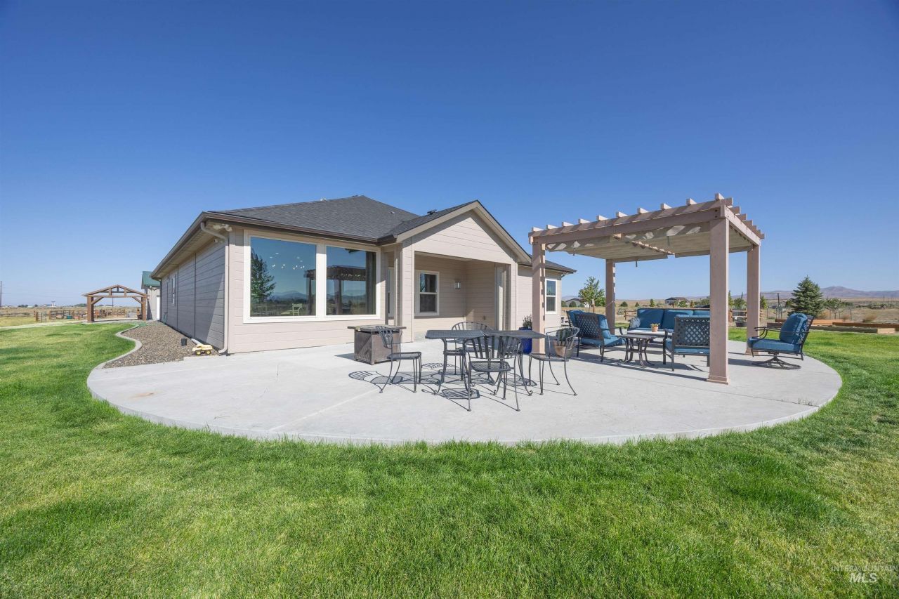 Welcome HOME to your very own sprawling estate 15 minutes from Boise in the up-and-coming community of Mayfield. This beautiful single level home sits on over 11.5 acres of rolling topography and tucked less than 2 miles off the I-84 exit. Enjoy your panoramic sunrises and sets from the shaded pergola on the large back patio or relaxing in the hot tub, surrounded by the Danskin Mountain Range This home boasts 2 large primary suites with walk in closets or for use as a private guest retreat with the split bedroom plan. Beautiful new shower in the NE suite. The tray ceilings and tall doors and windows draw your gaze up and theres a large open living area for gathering around the gas fireplace. The kitchen has ample counter space with the grand island, a large desk nook and a big walk-in pantry for plenty of storage. High quality water filtration system included. The large, insulated and heated shop can hold at least 3 more vehicles with room left for a hobbies, additional gathering space, storage or farm supplies and equipment. Theres ample RV parking on the side slab and additional covered parking (or hay storage) out front with a wraparound driveway. Bring your green thumb and enjoy the raised garden beds, Medley Orchard and NEW sprinkler system. Imagine your own horses, goats, chickens and hobby farm dreams. This property has been meticulously maintained by its owners.