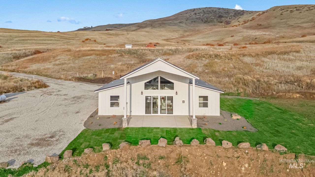 Escape the city! New construction, fully custom barndominium with massive mountain, river, and valley views. Monitor barn?inspired exterior with an extraordinary interior blending rustic charm and luxury finishes. Single-level living with soaring ceilings, a great room layout, and an open bonus loft. Features 3 bedrooms plus office. Primary suite with walk-in closet and tile shower. Split floorplan with jack and jill inspired bathroom. Covered rear patio overlooks breathtaking views. Find your solace surrounded by scenic beauty and year-round outdoor recreation?just 40 minutes to downtown Boise. Set on 2.5 acres for privacy and space for toys. Detached shop upgrade available. Built by renowned local builder Cascade Custom Construction.