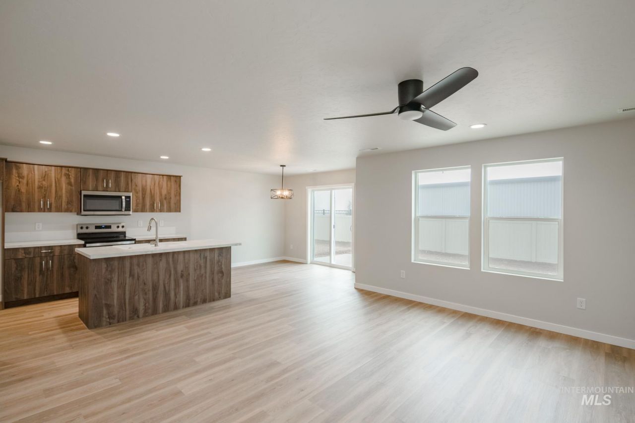 Get Lucky with 3.49% ? promotional rate available! Ask a Sales Specialist for details. This brand new home located in vibrant Nampa, Idaho welcomes you with open arms. The Poe 1471 offers timeless appeal with a well-planned layout featuring an open concept main level and all three bedrooms privately situated upstairs, where the kitchen island overlooks the living area to keep you connected while hosting or relaxing, and the dining room provides easy access to the back patio for fresh air and outdoor enjoyment. The kitchen is designed for both everyday cooking and entertaining with generous counter space and modern appliances, while the upper level includes a serene primary suite with an en suite bath, dual vanities, and an expansive closet, along with two additional bedrooms that offer comfortable personal space. With its efficient flow and inviting atmosphere, the Poe 1471 blends style and comfort in a way that makes it an ideal place to call home. Photos are of the actual home!
