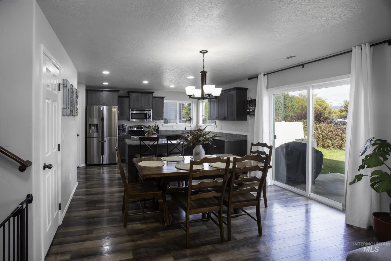 Welcome to 3142 N Sharon Ave. A warm and inviting home in the highly sought-after Copperleaf Subdivision of Meridian, Idaho. Designed for comfort and connection, this 4-bedroom, 2.5-bath home blends modern finishes with everyday livability in one of West Adas top-rated school zones. Step inside to an open and airy layout with stylish granite countertops, and stainless-steel appliances (refrigerator included). The kitchen flows seamlessly into the great room, perfect for entertaining or quiet Idaho evenings. Upstairs, the spacious primary suite features dual vanities, walk-in shower, and walk-in closet, while the versatile bonus room offers space for movies, hobbies, or play. Room being counted as the 4th bedroom is the flex room on the main level, currently set as a home office and does not have a closet but has been used as a bedroom, and can be counted as per appraiser verification and code. Some upgraded lighting and electrical outlets. New quality carpet and pad in late 2022. Outside, enjoy a fully fenced backyard with no rear neighbors, backing to a peaceful school yard for extra privacy. Located minutes from The Village at Meridian, parks, and dining, this move-in-ready home combines location, lifestyle, and lasting value. Experience why so many love calling Meridian home. Schedule your showing today!