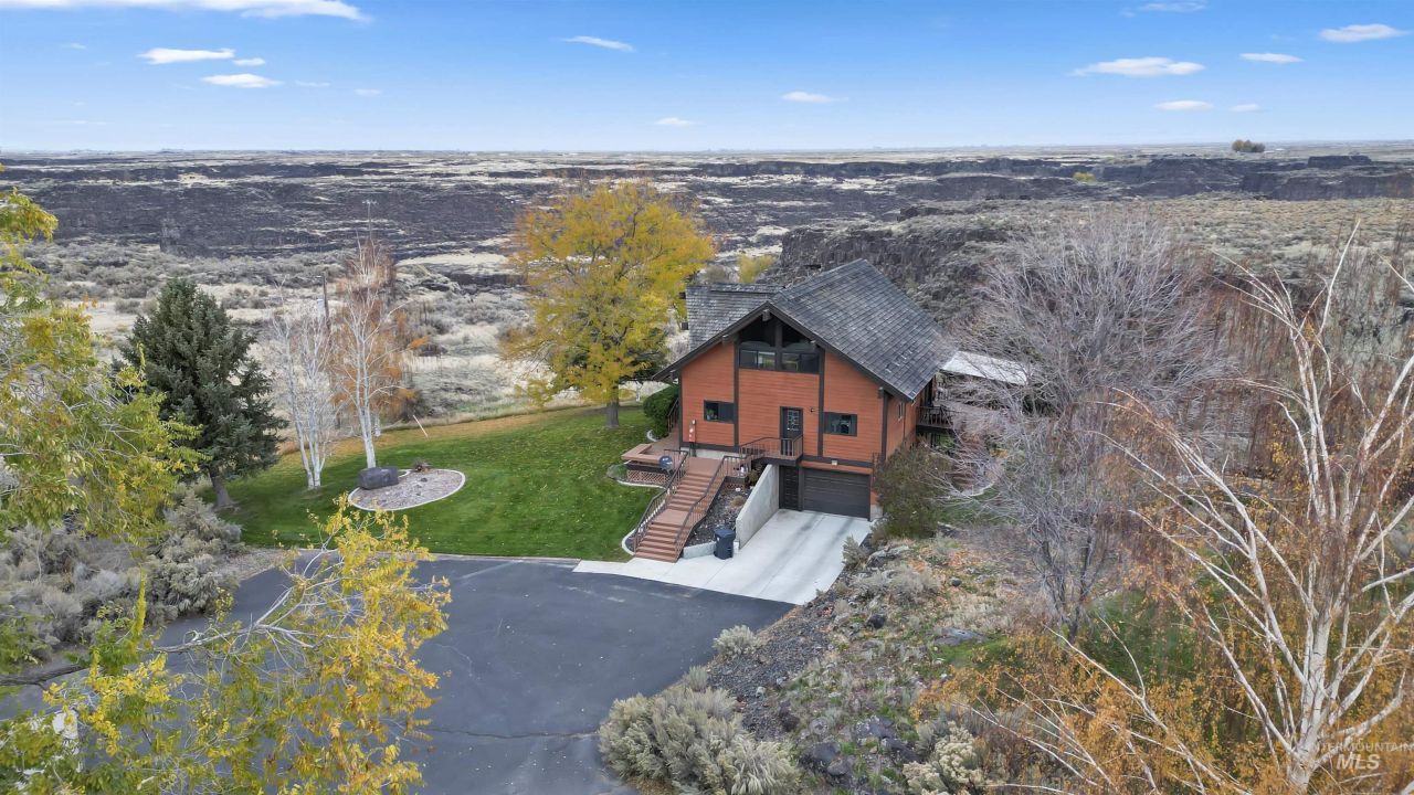 A Unique property with Amazing View of Snake River Canyon & Echo Lake from your living room or wrap around deck or secluded patio on the rim. Beautiful wood floors. Crank windows mostly. Chefs kitchen with upgraded appliances, custom pull out spice rack, deep drawers, 2 lazy Susans and quartz counter tops. Large primary suite with large windows with office with built in desk and lots of storage. Large walk in closet. Primary bath features dual sinks, quartz counter tops and walk in shower. Owned solar panel with $15.35 per month and not $300 to $500 per month. Owned Water Softener, Tran Furnace in 2021, Water heater 2019. 30 X 50 insulated & heated shop. (Could fit 8 cars or lots of toys) Hot tub area, patio and green house with raised flower beds. Covered treks deck just outside kitchen and dining area. Lots of trees. Beautiful views out all sides of the home. Paradise!!! Some pictures are virtual staging.