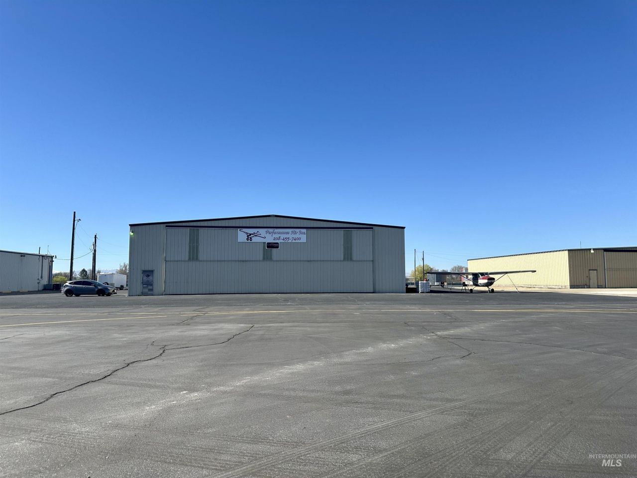 8,000 sq ft Commercial Executive Hangar - 3 hangars in one building! One 80X50 with a 60X16 (clear) Wilson bi-fold and two 50X40 hangars w/426X1310 (clear) Wilson bi-fold doors. Perfectly located on the Caldwell Executive Airport (EUL) and configured well for 1 to 3 aviation businesses. Steel framed, heated hangar spaces with Pilot lounge (full bath) and upstairs office & storage areas. Must be used for aviation purposes. Call for additional Info - Please do not disturb tenant.