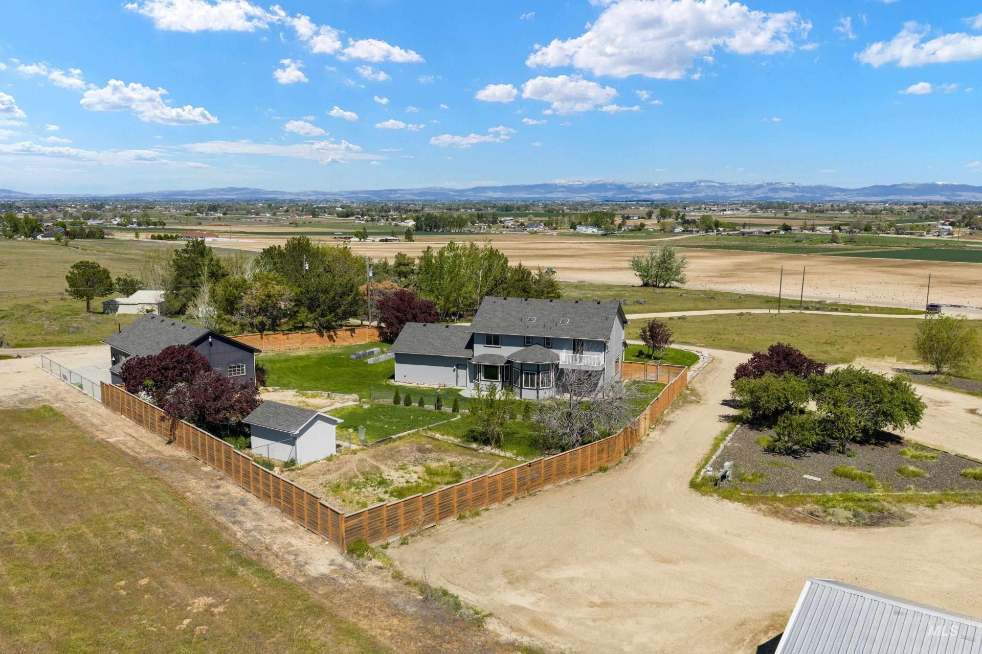 Professional Photos Posted Soon! Hilltop Living with Unmatched panoramic Views on 4.32 Acres & Shop - No HOA! Welcome to your private slice of country paradise! This stunning 2 story features a charming country front porch-perfect for morning coffee or sunset relaxation. Space, freedom, and functionality youve been looking for. 3 outbuildings including a insulated 24x44 heated shop with 220, lots of outlets, separate office space 24x10, built-in air compressor outlets, auto RV door and tons of attic storage space! Inside the home, you will find beautiful custom tile work, granite countertops throughout, and recently upgraded modern flooring that blends style with comfort. Vaulted  entry with gorgeous winding staircase. Gourmet kitchen with wrap around breakfast bar and eating space. 2 large living spaces plus formal dining area. Laundry room with sink. Primary bedroom features a granite shower with dual heads and glass doors. Skylight, walk-in closet, dual sinks and balcony for wildlife viewing. Roof new in 2019, New Well/pump & water softener in 2026, Built in vacuum. Fenced in yard area. Centrally located 5 miles from Lake Lowell fishing/recreation wildlife area. About a 10 minute drive to the nearest grocery store, close enough for convenience, but still fully country living with privacy and views. Kuna School District.  This is the Idaho escape you have been waiting for.
