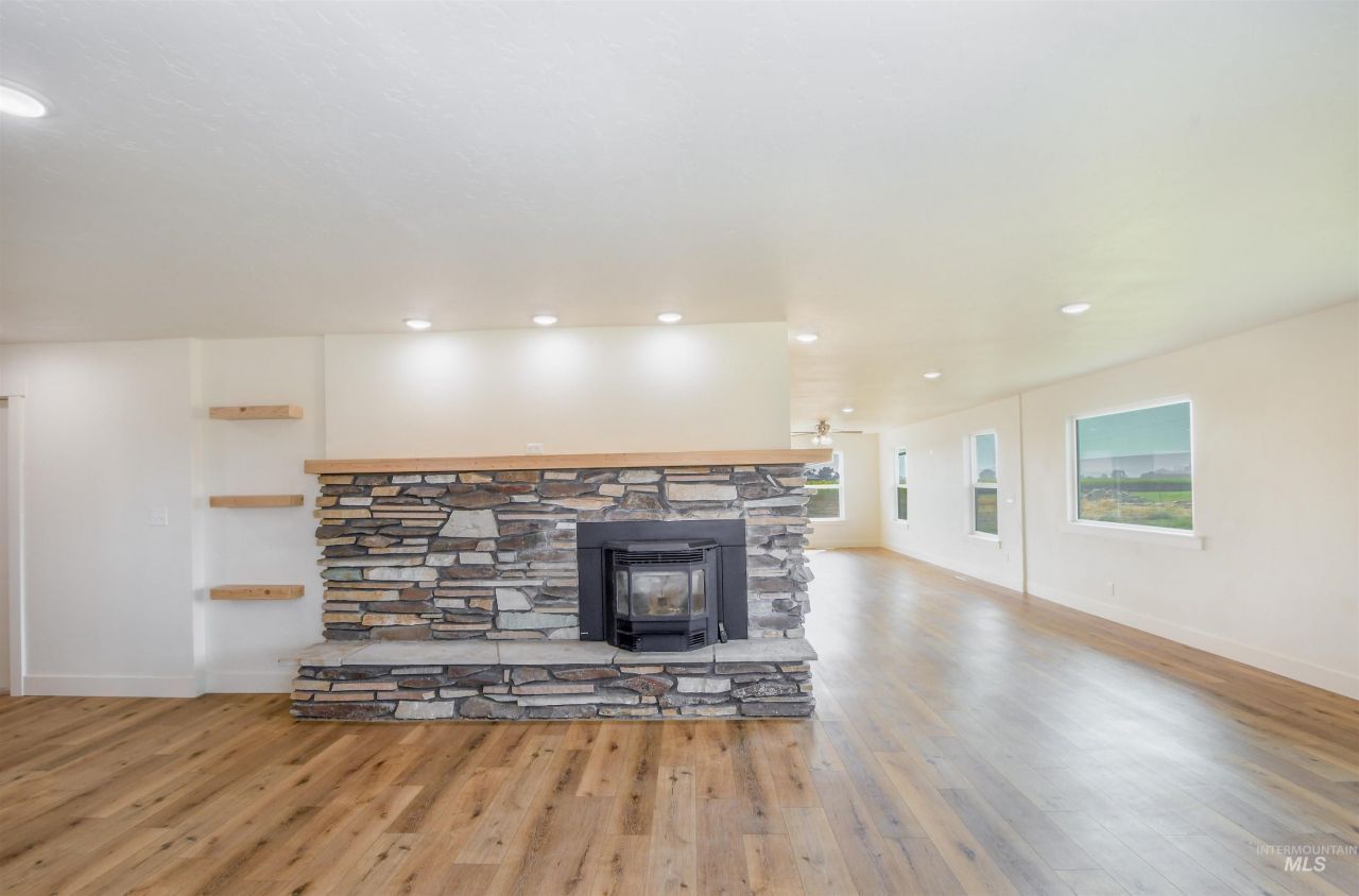 Set on highly-coveted acreage in Melba, this thoughtfully designed home combines rustic charm with modern comfort, all framed by sweeping Owyhee Mountain views. A wide, welcoming front porch opens to a bright living room anchored by a striking fireplace?perfect for cozy nights in. The chefs kitchen, complete with granite island and abundant cabinetry, flows seamlessly into a sun-filled family room where wall-to-wall windows capture the breathtaking scenery. Step out to the private courtyard, an ideal space for sunset gatherings or quiet relaxation. The main-floor primary suite offers spa-like indulgence with a soaking tub, double vanities, an oversized shower, and a private laundry in the walk-in closet. A wraparound ramp allows for a private entrance, perfect for guests or multi-generational living. Downstairs, the daylight basement adds incredible versatility with three bedrooms, a second kitchen, and oversized windows that bring the outdoors in. Truly a one-of-a-kind Idaho retreat.