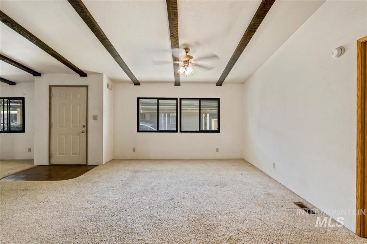 Welcome to comfortable, easy living in this spacious home nestled within a quiet 55+ community. With an open layout, generously sized bedrooms, and abundant storage throughout, theres room to truly spread out and settle in. The great room features vaulted ceilings with exposed beams, adding warmth and architectural character, while large windows fill the home with beautiful natural light. The dining area includes a charming built-in hutch?perfect for displaying favorite pieces or hosting gatherings. A roomy laundry space with built-in cabinetry adds everyday convenience, and the thoughtful floorplan offers flexibility to make the space your own. Well cared for and full of opportunity, this home is ideal for someone ready to add their personal style and create something special. Outside, enjoy covered parking with a spacious carport and additional storage in the oversized shed. Dont miss out ? this is the best-priced home like this available!
